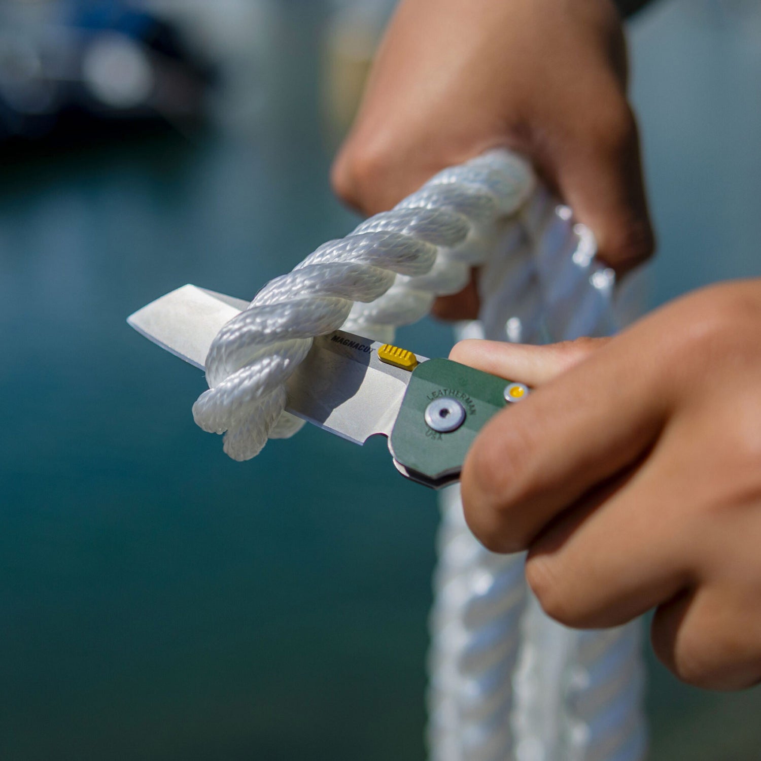 Hoja tipo ‘sheepsfoot’ con afilado cóncavo de acero MagnaCut®Hoja de MagnaCut® con hollow saber grind y hoja de punta pie de oveja para una acción precisa y cortante