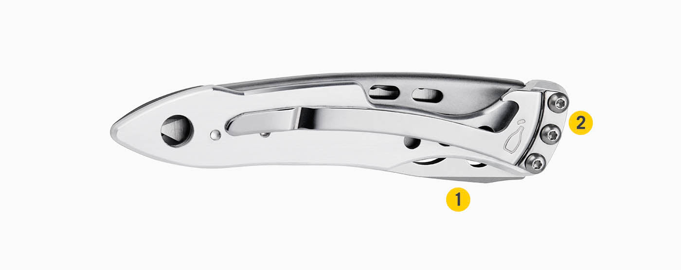Clip de poche remplaçableUtilisez ce clip pour attacher votre outil multifonction à une poche ou à une boucle de ceinture. Vous pouvez aussi retirer le clip.