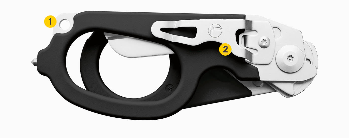 Deze opvouwbare traumaschaar is ontworpen voor spoedeisende hulp en combineert vijf essentiële gereedschappen: een hoogwaardige schaar, een riemsnijder, een ringsnijder, een zuurstoftanksleutel (voor Amerikaans formaat) en een glasbreker. De Raptor Rescue is opvouwbaar voor extra draagcomfort en wordt geleverd met een hoesje voor snelle toegang op kritieke momenten.